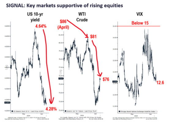 Furthermore, we're continuing to see supportive moves in interest rates, oil prices, and the CBOE Volatility Index (VIX, known as the market’s “fear gauge”):