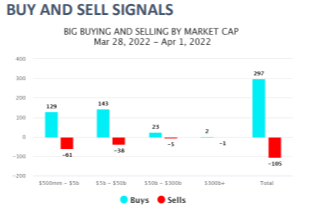 Recently, we’ve seen the BMI jump up significantly, indicating positive money flows to stocks. There’s been more buying (albeit somewhat muted) than selling, and that continued with 297 buy signals to just 105 sells: