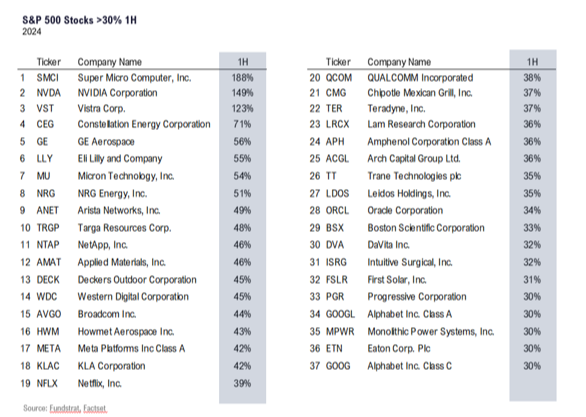Here are the stocks that gained 30% or more in 2024’s first half#, ^: