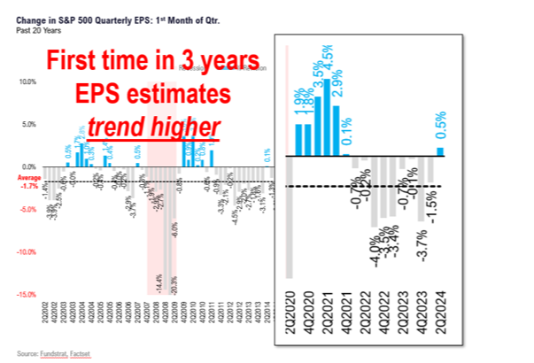 This is the first time since 2021 quarterly earnings estimates have revised higher in the quarter’s first month. The last time was in 2021.