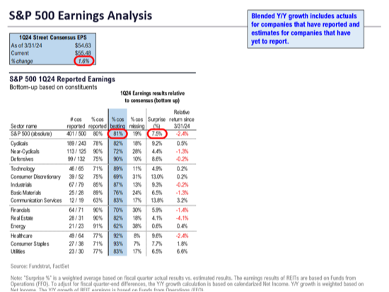 - 81% of firms beat consensus estimates.