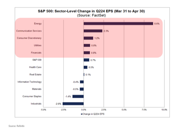 First, earnings beats have been strong enough to raise expectations for the second quarter and the entire year: