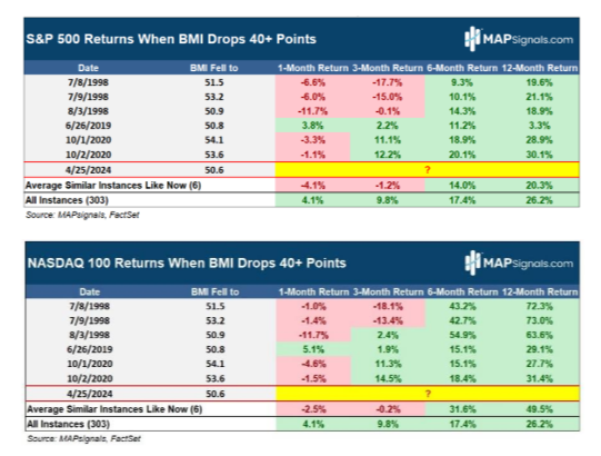As a refresher, MAPsignals provided research showing the historical, forward-looking context of what we might expect when these rare 40% drops occur so quickly: