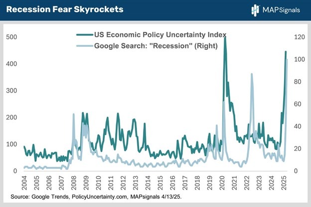 Our friends from MAPsignals put together a study on how Google searches for “recession” align with general policy uncertainty: