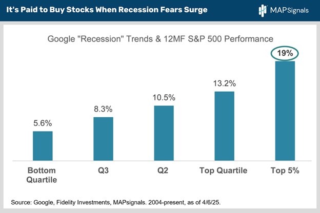 When economic fear is at its highest, the S&P 500 averaged 19% in the 12 months that followed.