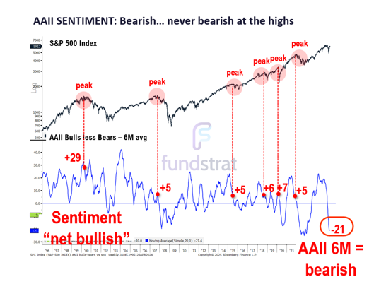 Fourth, the six-month average reading of individual investor sentiment is still at -21: