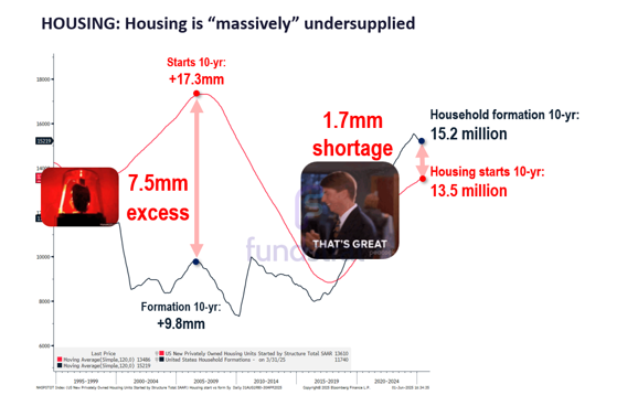 Next, the housing deficit in this current cycle is a 1.7 million shortage of homes over the past decade:
