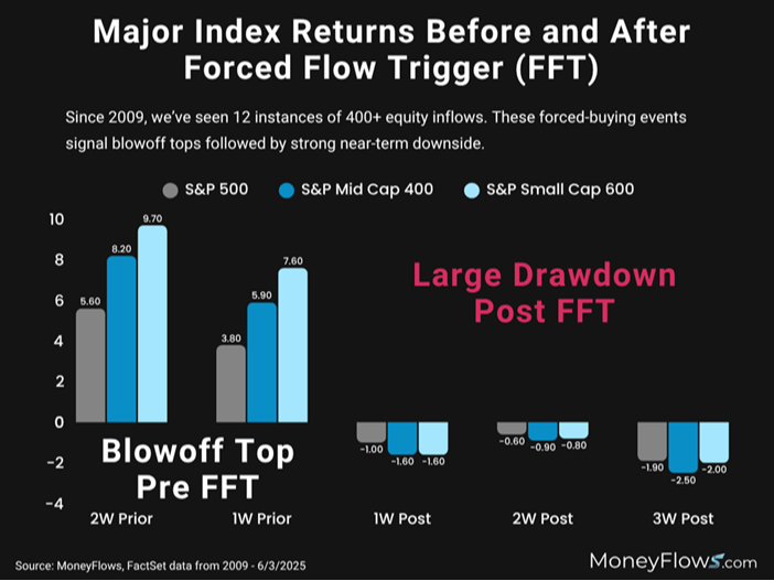 Perhaps most surprising is this extreme difference in buying versus selling thus far has been achieved without massive, forced buying (i.e., force inflows):