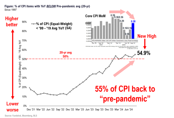 And third, the percentage of CPI components below pre-pandemic averages is now 55%: