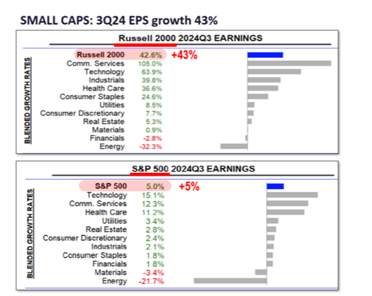 This inflation dynamic is also reflected in the per-share earnings growth of the small-cap-laden Russell 2000* for the third quarter, per Fundstrat: