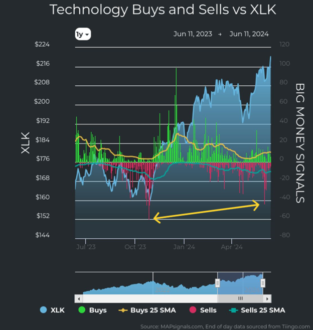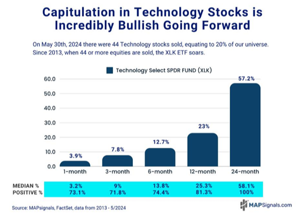 Stopping there would seem rosy, but it's important to look at both sides of the coin. As we've seen in the beginning of June, technology stocks experienced their highest level of selling since last October: