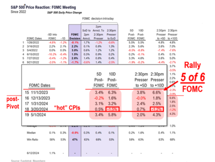 Why is last week’s data so important? Stocks rallied five and 10 days after Fed interest rate decisions in five of the most recent six instances supported by slowing inflation data: