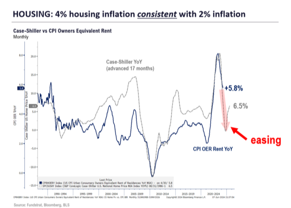 Knowing this, we think an even stronger positive move may occur after the extraordinary softness from the CPI report because inflation momentum has shifted downwards significantly. Encouragingly, the other lagging indicator, housing, is beginning to catch up to market readings: